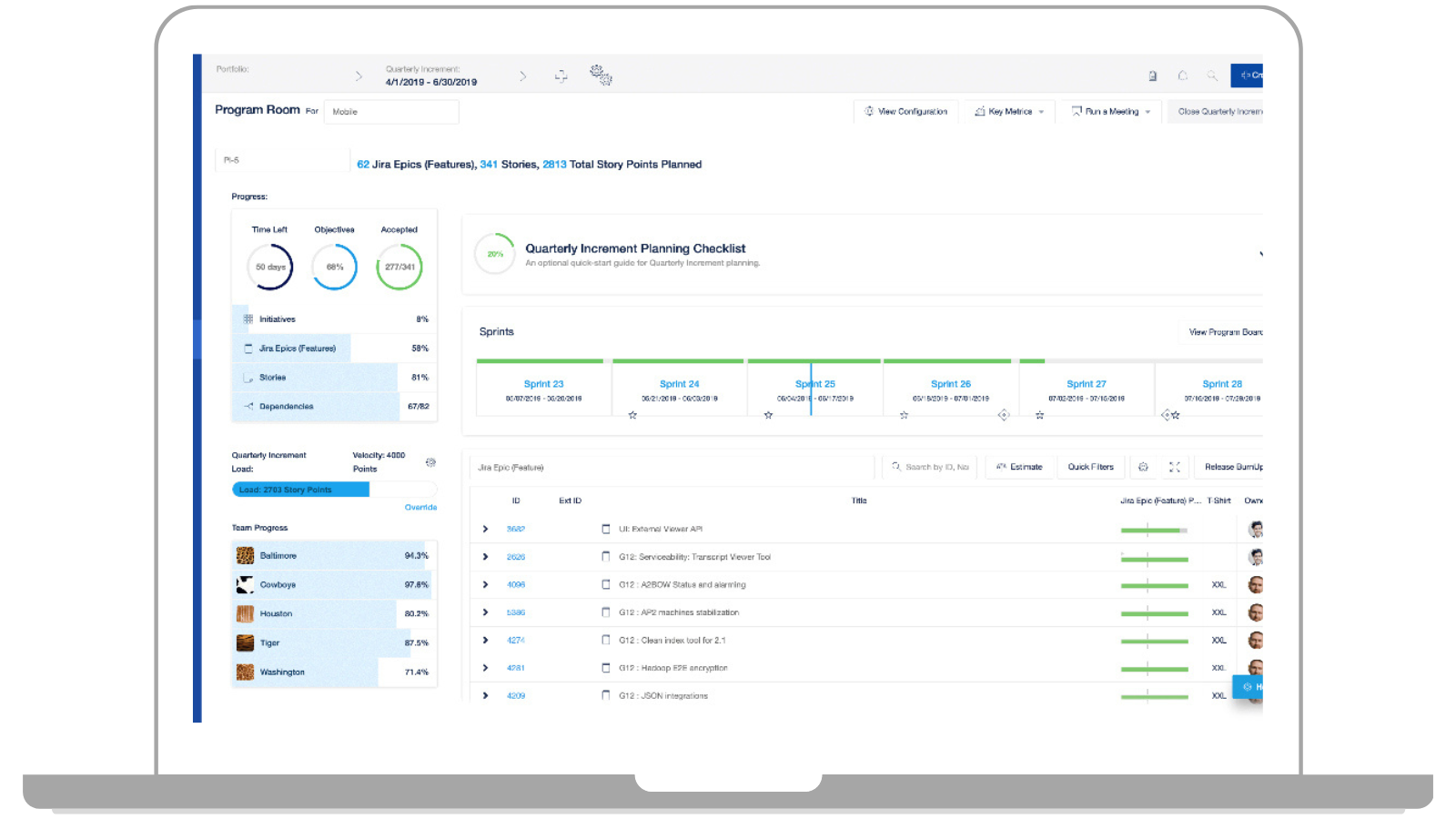 Mit Atlassian Jira Align implementieren Sie agile Frameworks wie beispielsweise LeSS, SAFe oder S@S und erschaffen eine lebendige agile Organisation auf allen Unternehmensebenen durch vernetzte Teams und durchgängige Transparenz in Echtzeit. Bringen Sie mit einer der besten Lösungen für die Planung und Umsetzung von Agilität in großen Organisationen Ihre Unternehmensstrategie und deren Umsetzung in Einklang. Verteilte Teams und Führungskräfte sind zu jeder Zeit auf dem aktuellen Stand. So maximieren Sie Ihre Ergebnisse ohne aufwändige Informationsbeschaffung und Zeitverlust.