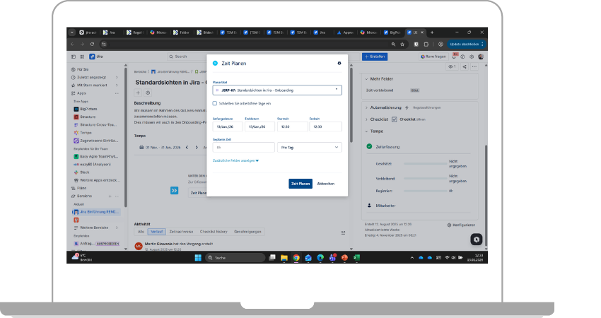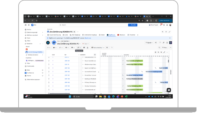 - Konfiguration von Jira inkl. der Erweiterungen Tempo & BigPicture