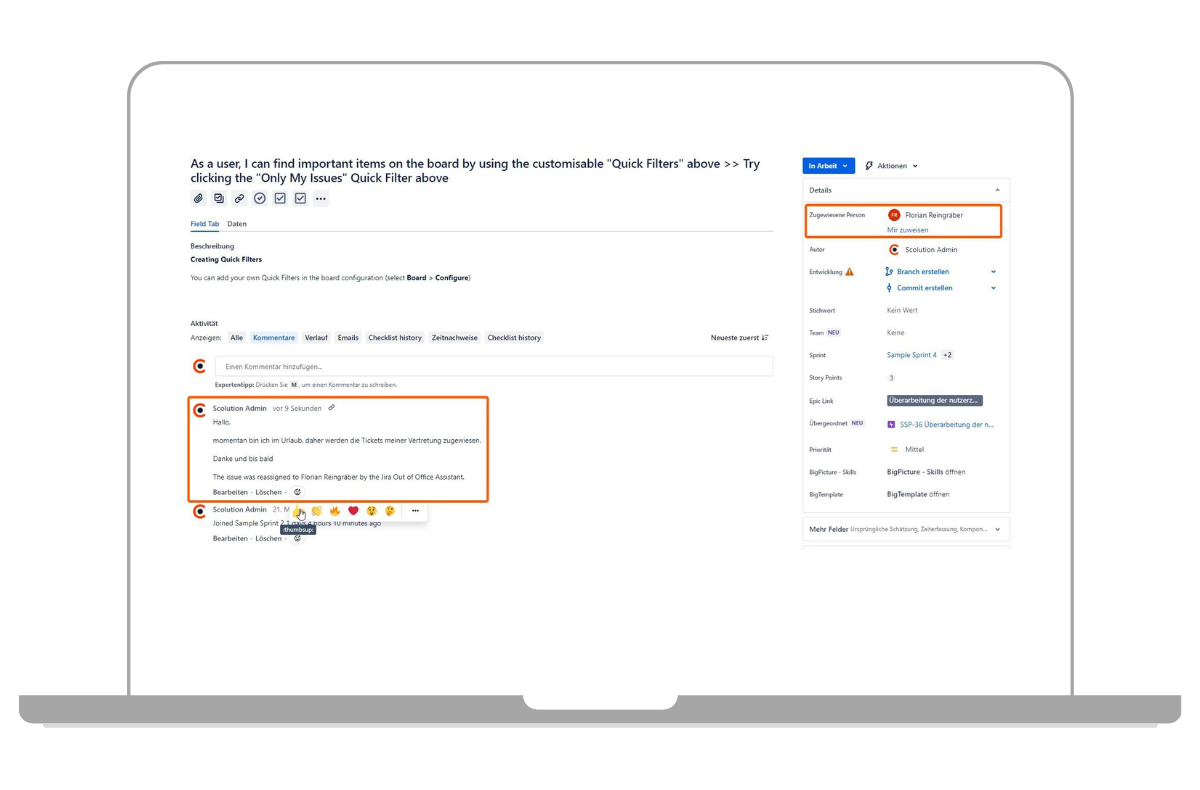 Abwesenheitsnotizen und Vertretungen in Jira