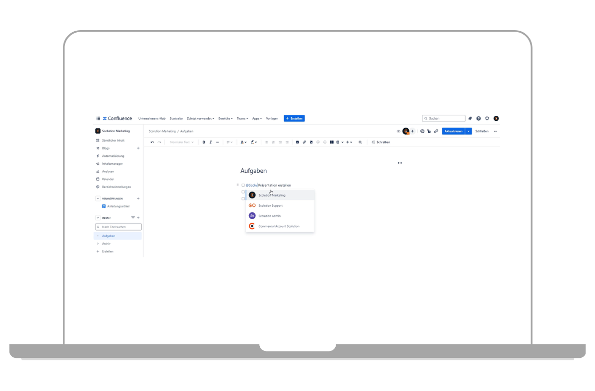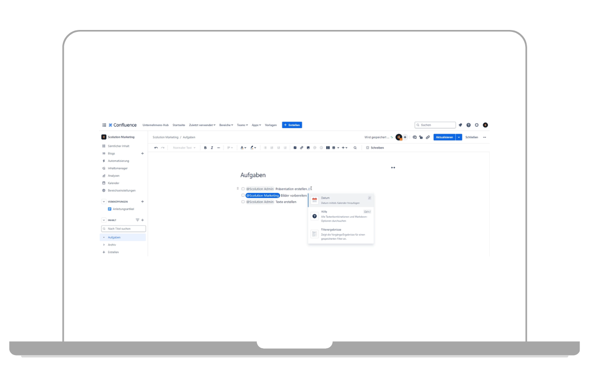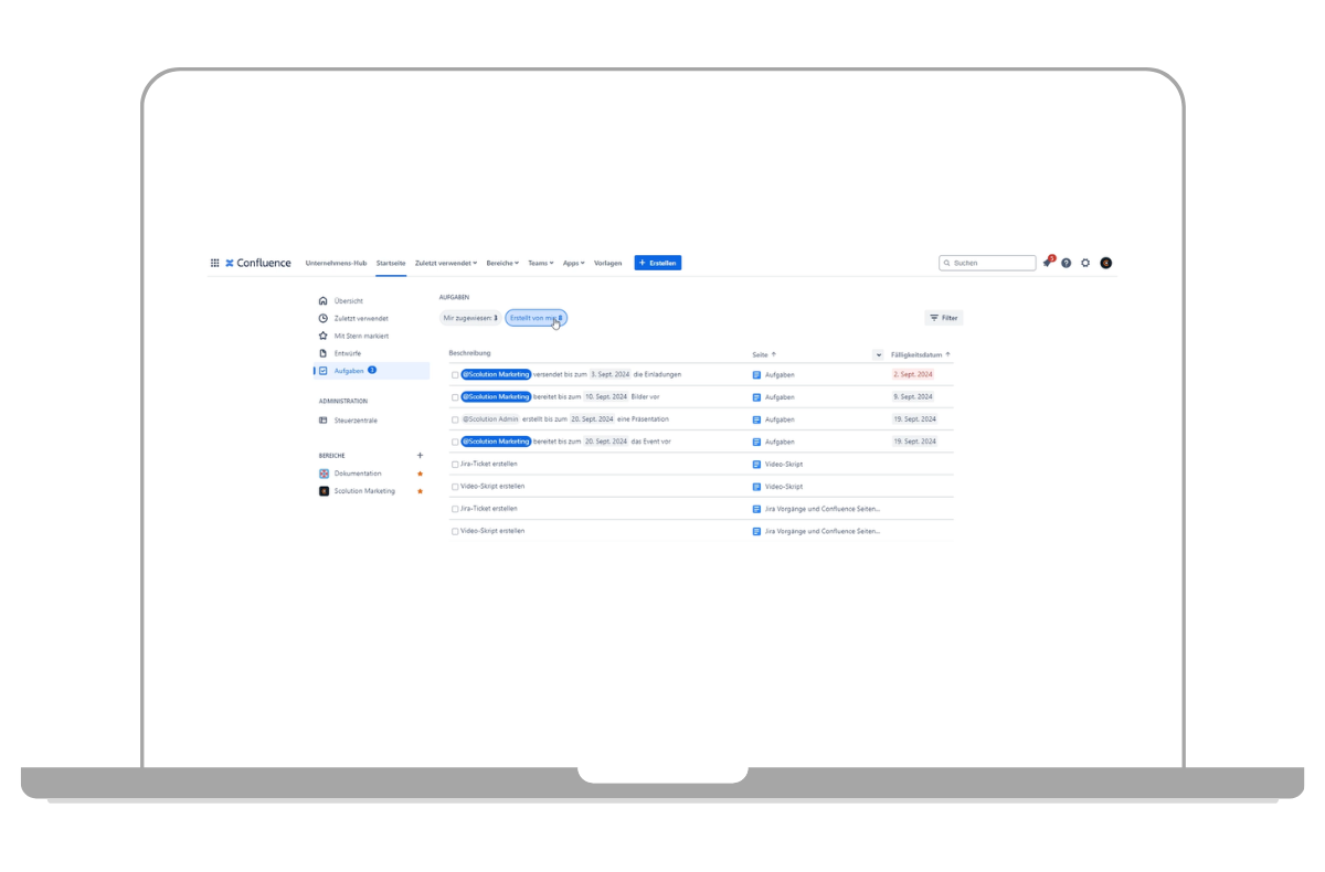 Aufgabenverwaltung in Confluence