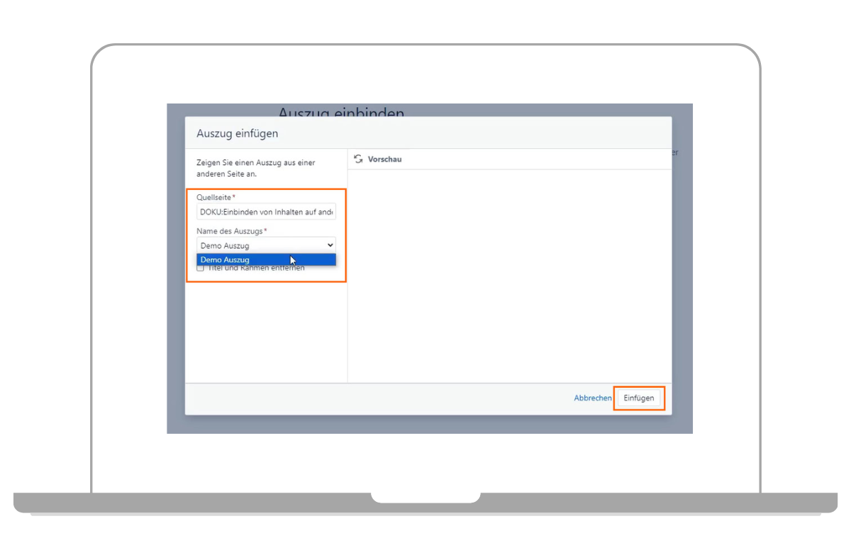 Auszug auf einer anderen Seite einfügen