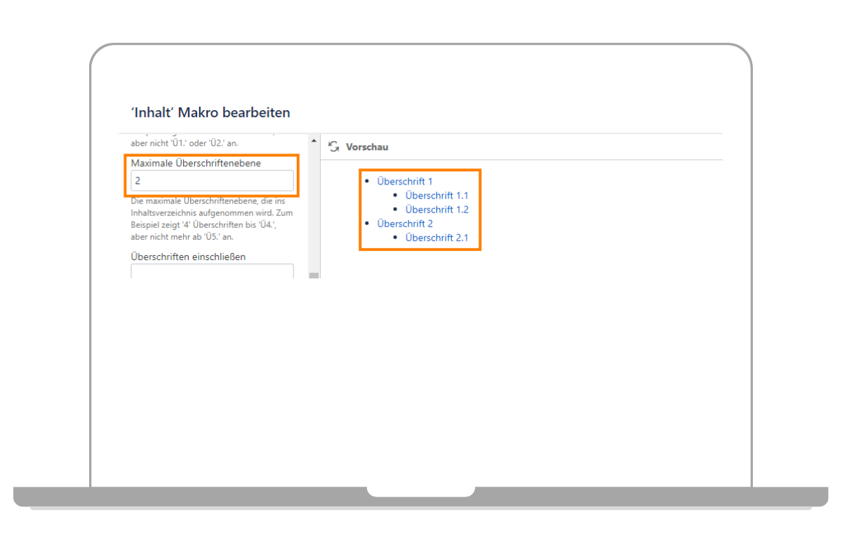 Schritt 2 - Confluence Inhaltsverzeichnis konfigurieren