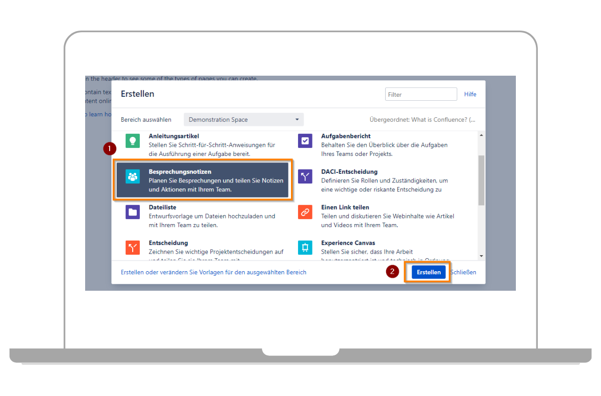 Confluence Seite mit Vorlage erstellen