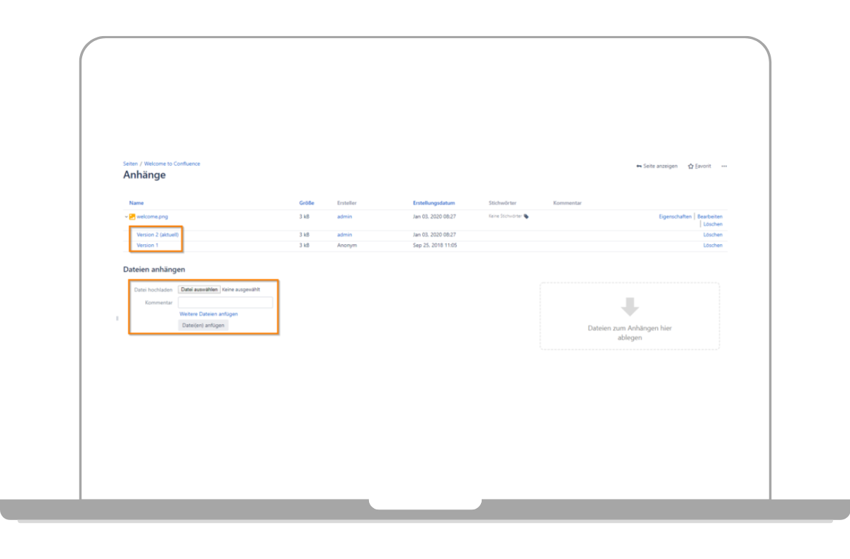 Wenn Sie Inhalte direkt in Confluence erstellen, also nicht in Excel oder Word, dann werden diese automatisch versioniert. Jedes Bearbeiten und anschließendes Speichern einer Seite, wird als neue Version in Confluence angelegt.