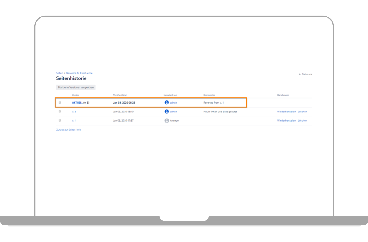 Confluence Versionierung