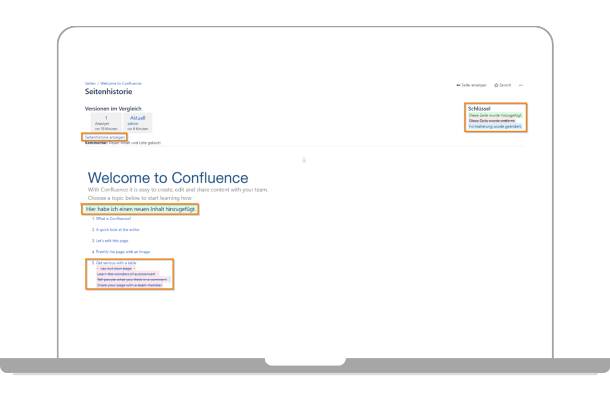 Confluence Versionierung von Inhalten