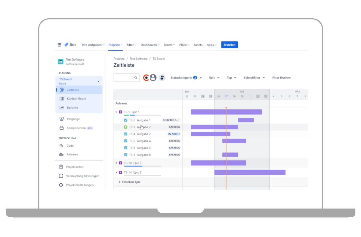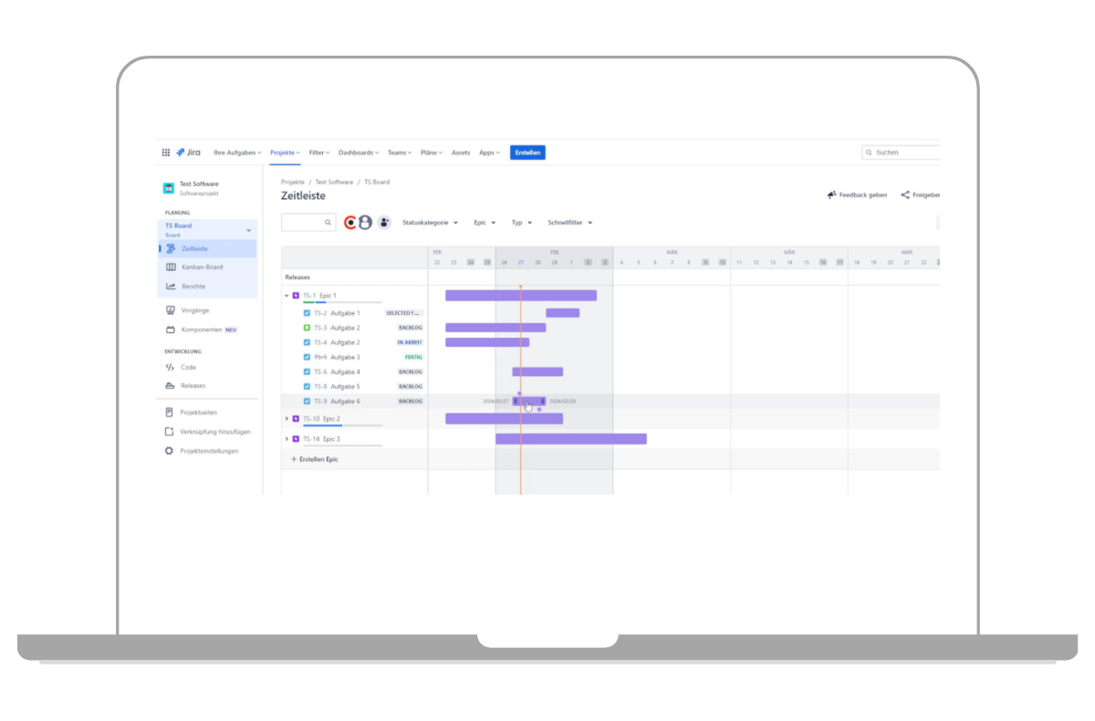 Die Zeitleiste – oder Timeline – ist mittlerweile ein Standard-Feature in Jira Software Cloud. Dabei handelt es sich um eine Planungsansicht, die dazu dient, Aufgaben zu planen, Fortschritte nachzuverfolgen und Abhängigkeiten innerhalb eines einzelnen Teams und Projekts zuzuordnen. Erfahren Sie mehr in unserem Beitrag.