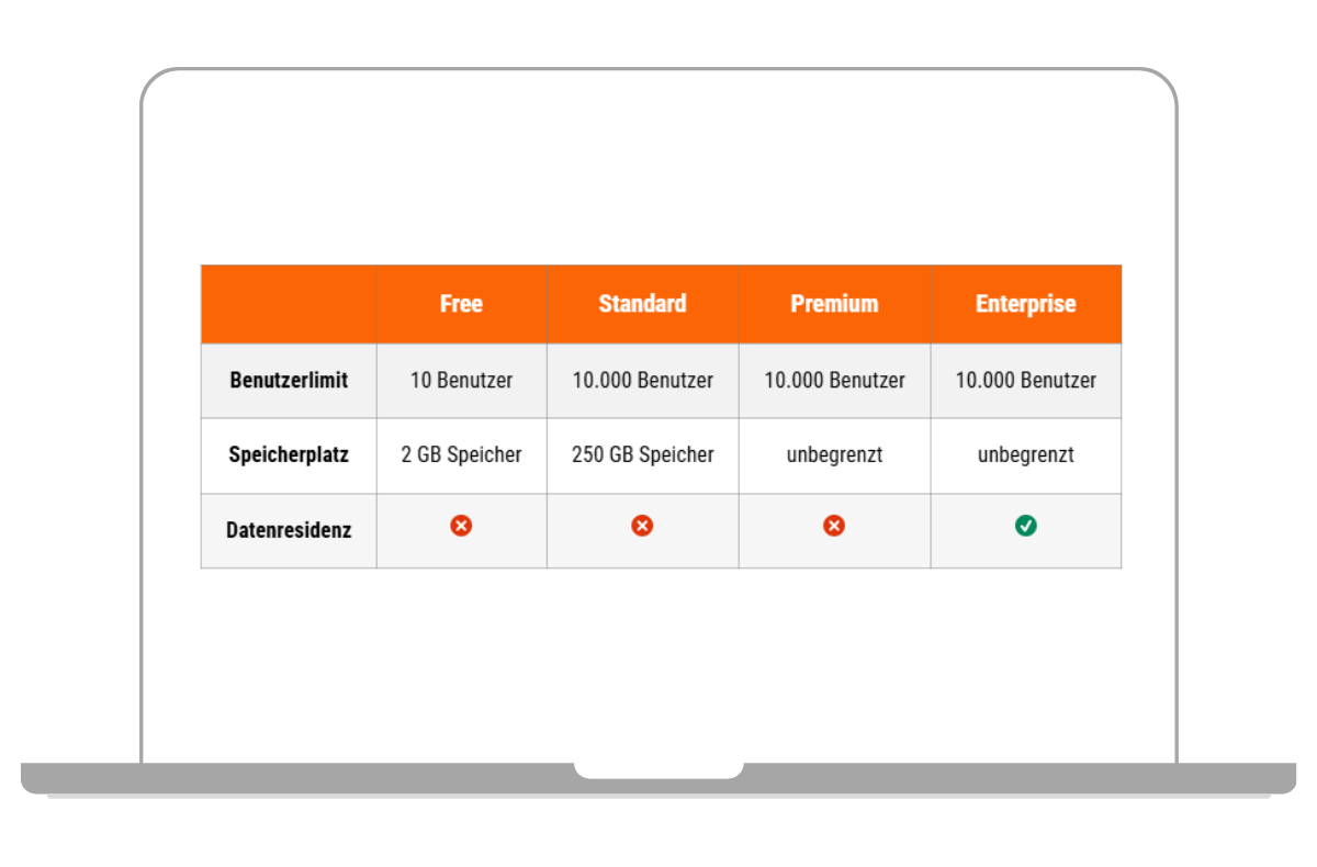 Benutzerlimit, Speicherplatz & Datenresidenz