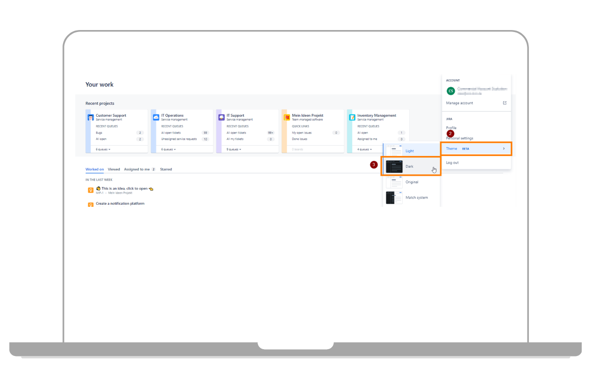 Schritte, um den Jira Dark Mode zu aktivieren