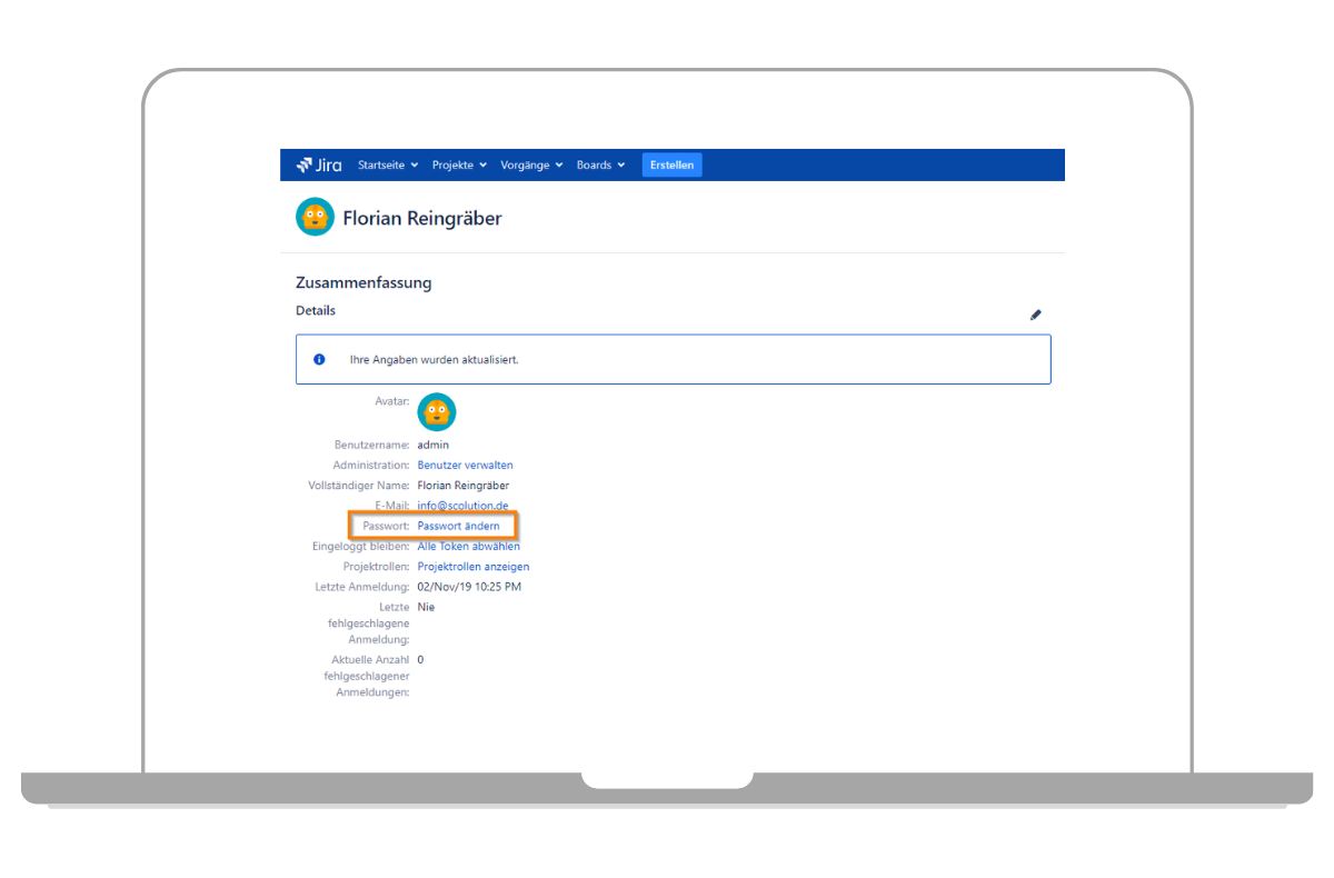 - Jira Passwort im Profil ändern