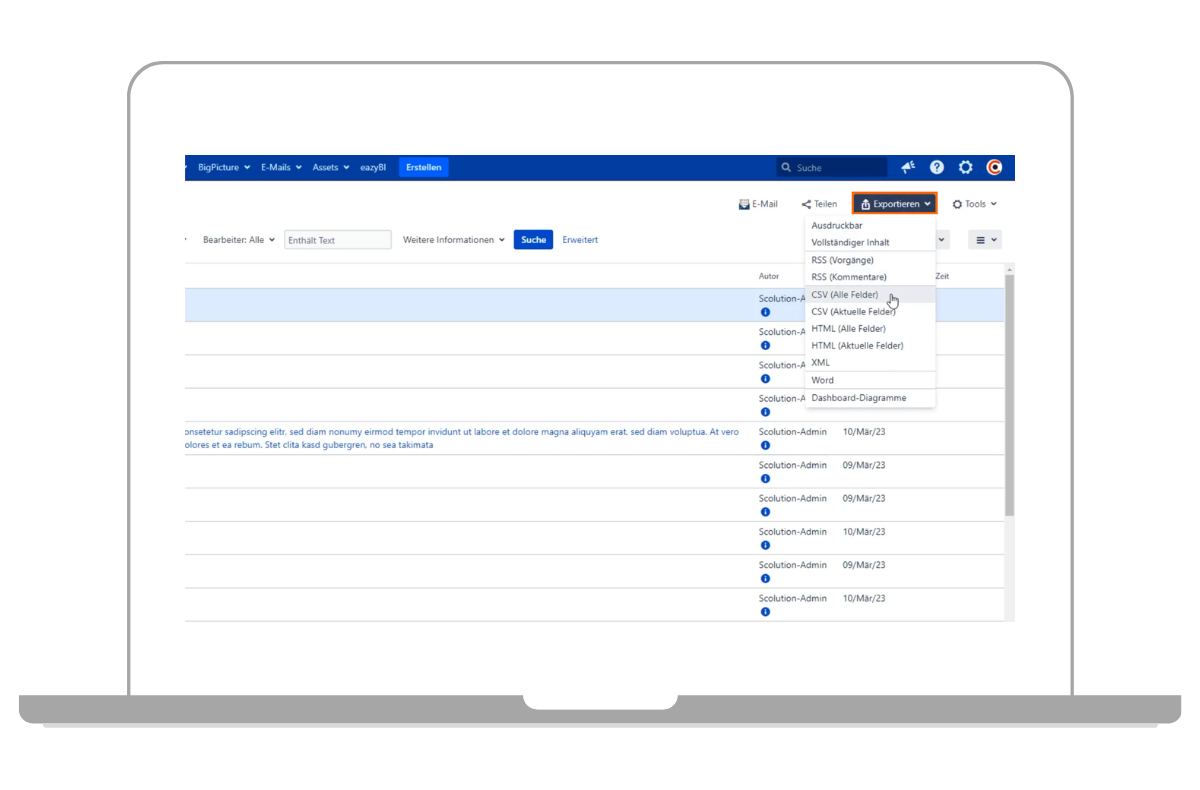 So einfach exportieren Sie aus Ihren Jira Tickets heraus eine CSV-Datei.