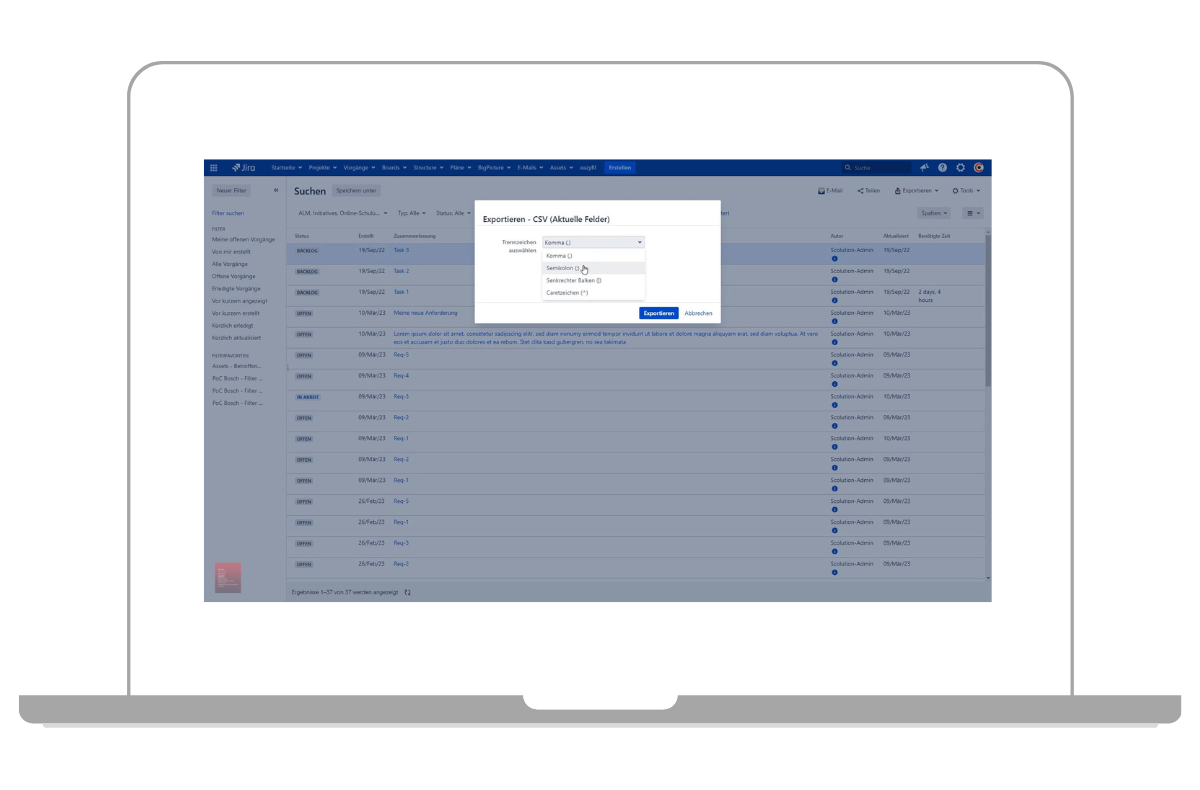 Sie möchten aus Jira heraus Tickets oder Vorgänge als CSV-Datei exportieren? Wie der Export funktioniert und welche Limitierungen es dabei gibt, zeigen wir Ihnen in dieser Anleitung. Diese Vorgehensweise funktioniert sowohl für die Data Center Variante als auch für die Cloud.