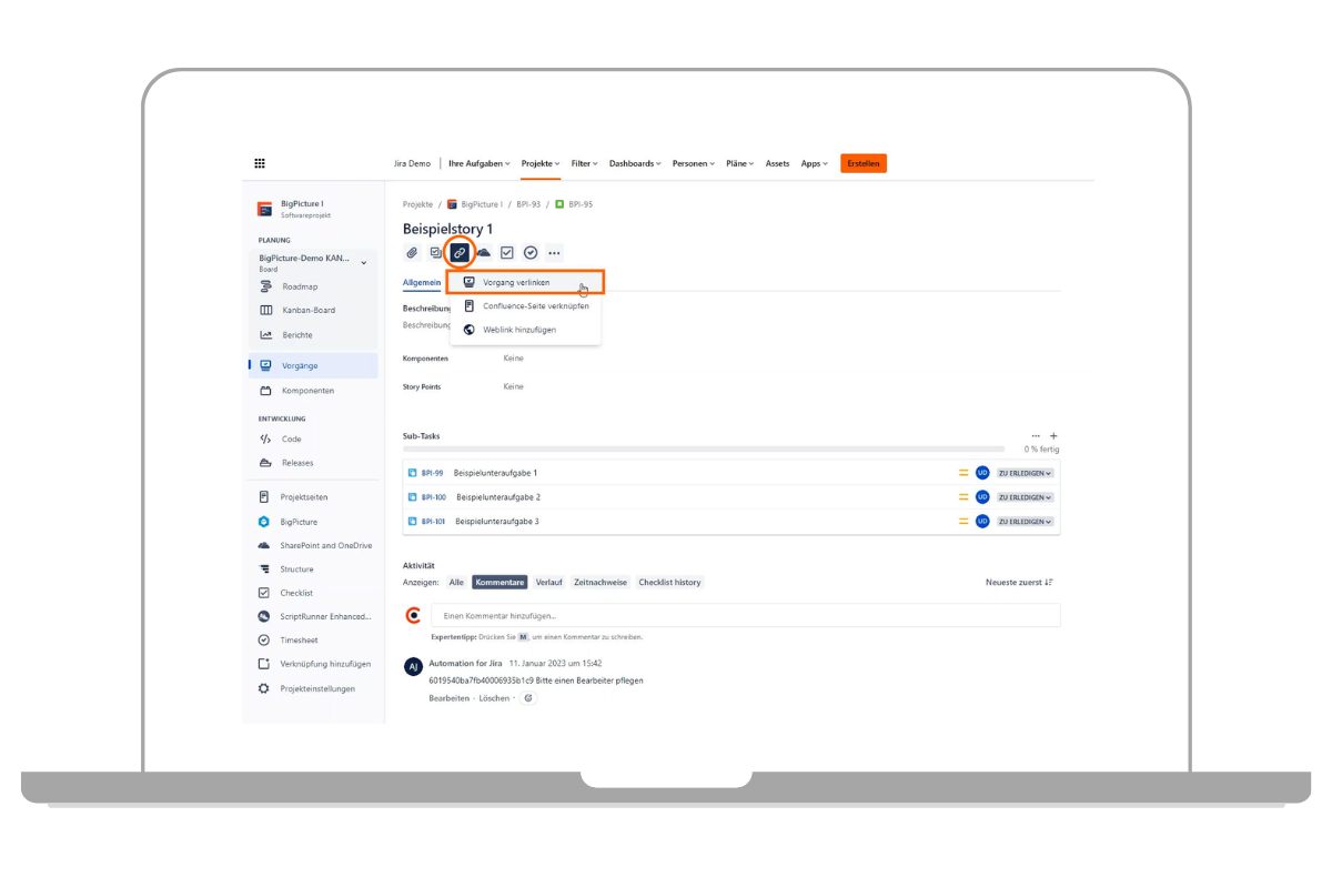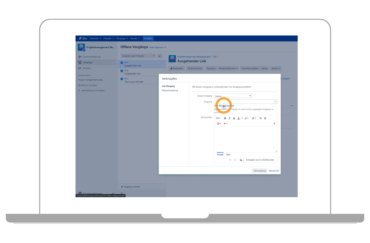 Jira-Ticket in der Cloud-Variante verlinken