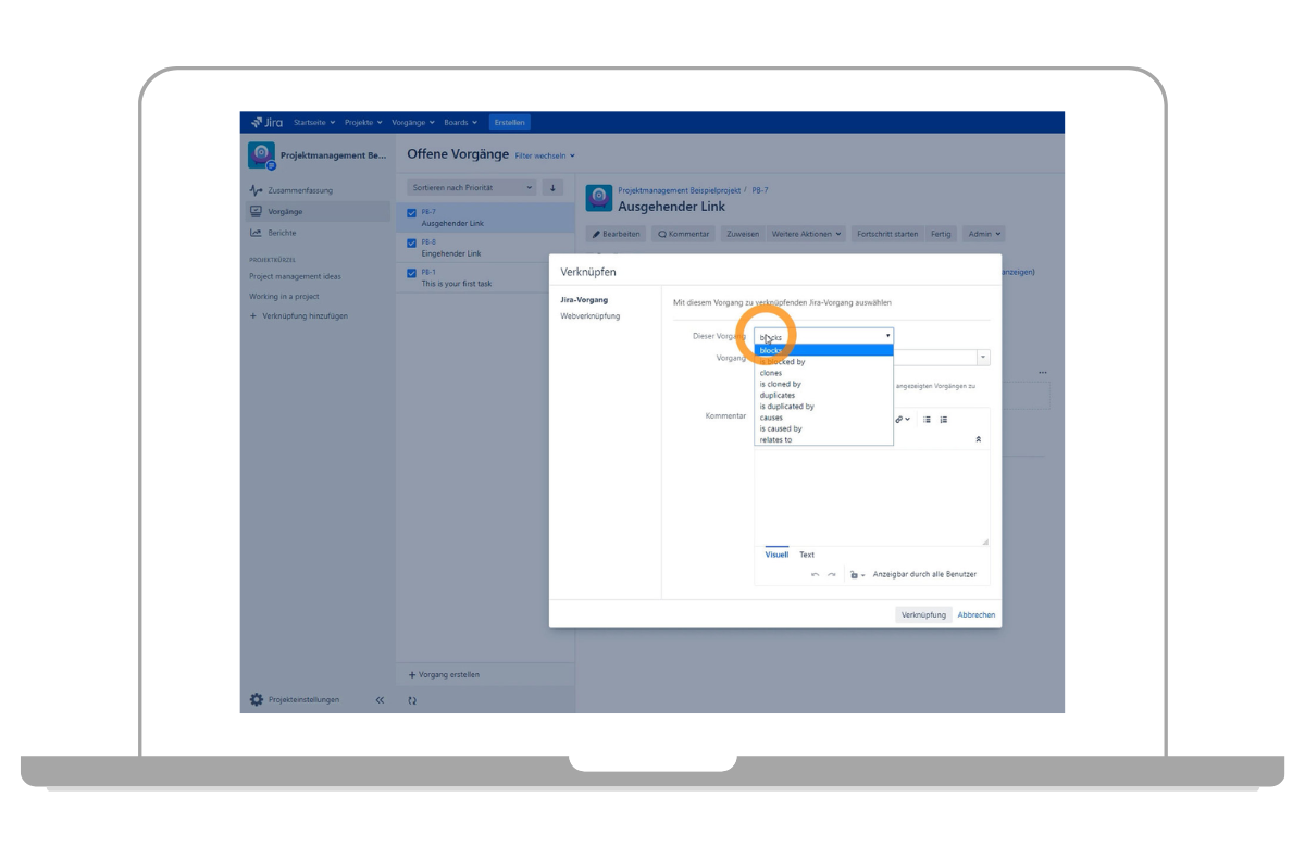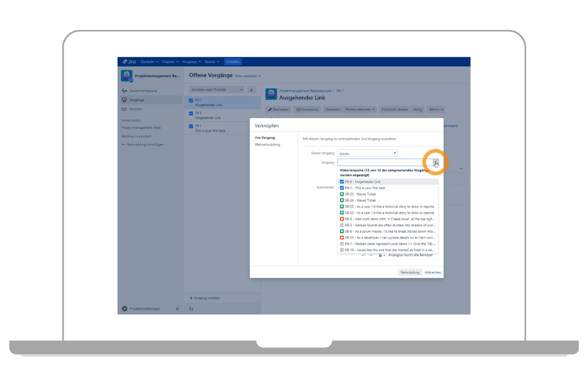 Jira Tickets verlinken - Anleitung