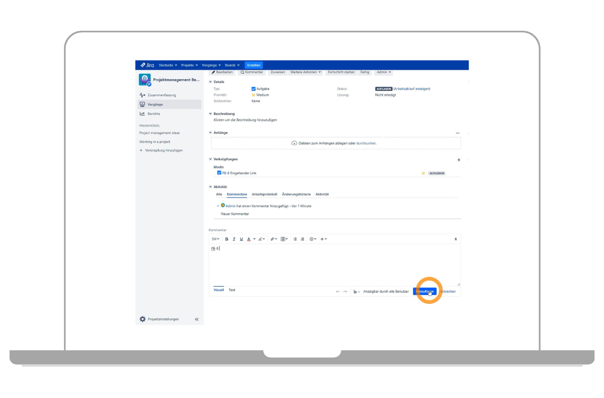 Jira-Ticket in den Kommentaren verlinken