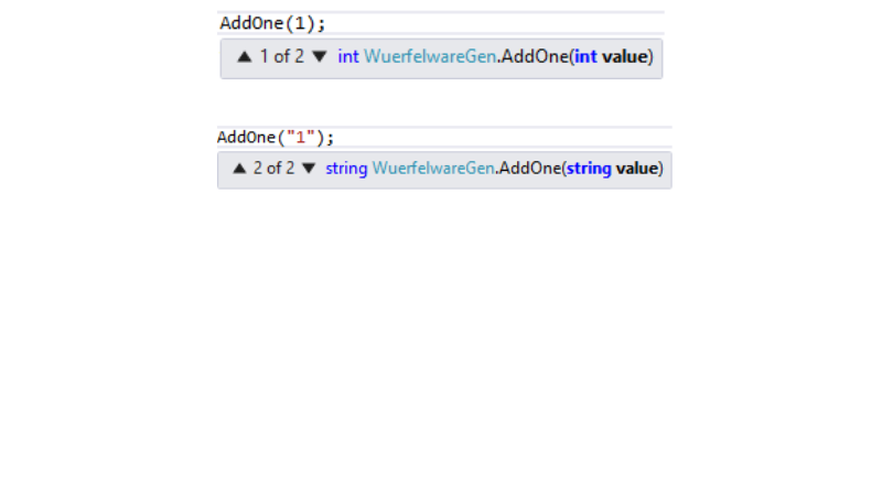 - die Autovervollständigung zeigt die Liste aller erlaubten Signaturen einer Funktion an